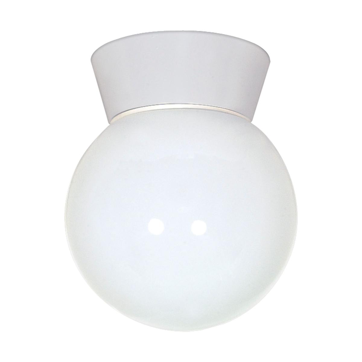 Flush mount utility light featuring a white holder with a 6″ threaded acrylic globe, available in smoke, white, clear, or frosted finishes.