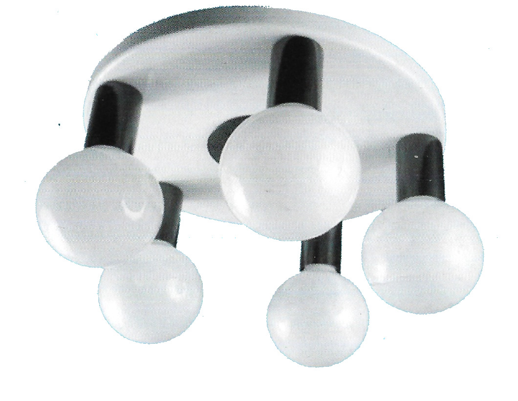 Ceiling flush five-light fixture mounted on a 16″ round canopy. Designed for use with five G-25 bulbs (60W max, bulbs not included). UL Listed for safety and reliability.