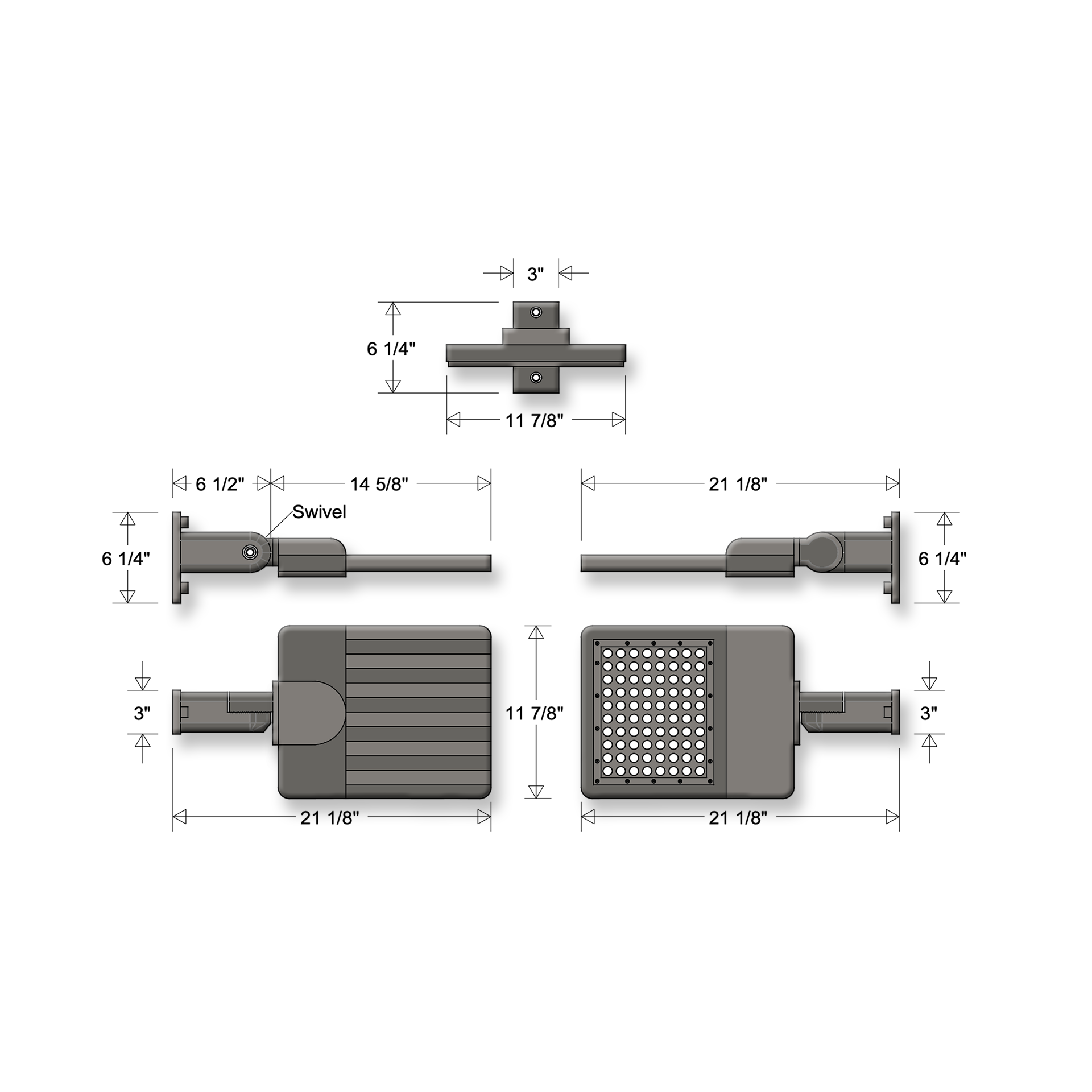 All-aluminum LED shoebox fixture with swivel mount. Fits 4″×4″ square posts (#6400 / #6400SB Series). Available with 1–4 heads. UL Listed.