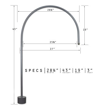 Dimensions: Width: 28.5″ | Height: 43″| Drop: 18 5/8″ | Extension: 19″ | Pipe Diameter: 7/8″