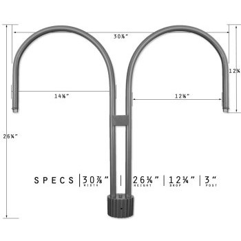 Double J-shaped 1/2″ IPS schedule 40 aluminum mount arm with a sturdy base designed to fit 3″ diameter posts. This dual-arm gooseneck post light mount provides strong support for two fixtures, ideal for expanded illumination.