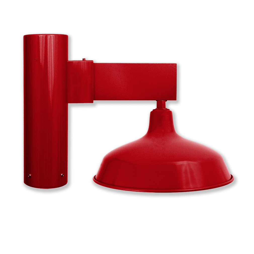 LED outdoor RLM fixture with a 16″ aluminum shade on a straight post-mount arm. Overall size 16″ diameter with a 21-1/2″ extension. Made in the USA.