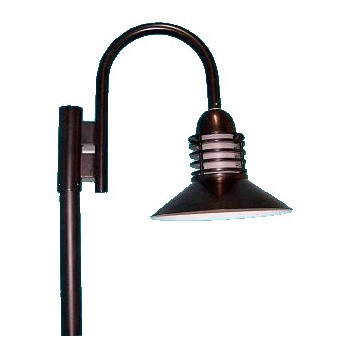 Louveraire shade for outdoor use on a heavy-gauge offset “J” gooseneck made from 1.5″ schedule-40 pipe; secures to a standard 3″ round post. UL Listed.