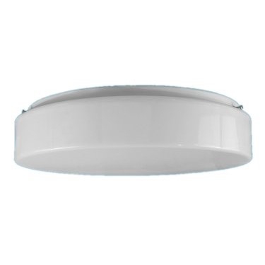 White ceiling-mounted acrylic drum light on a 5.25″ round canopy. UL Listed for safety and dependable performance.