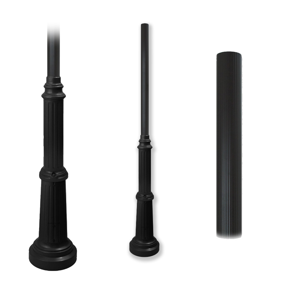 Fluted aluminum posts in multiple sizes with a wiring access door, 10″ slotted bolt circle, and a 12-3/4″ diameter cast base. Available in 0.050 gauge.